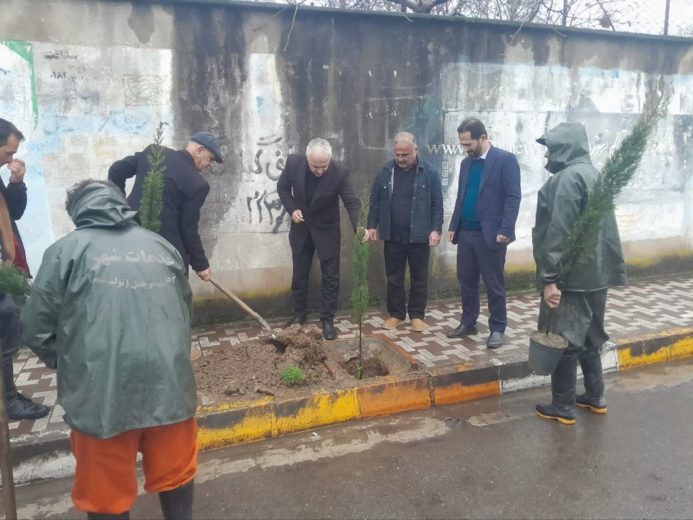 کاشت درخت در هفته درختکاری توسط شهردار و اعضای شورای اسلامی تولم شهر